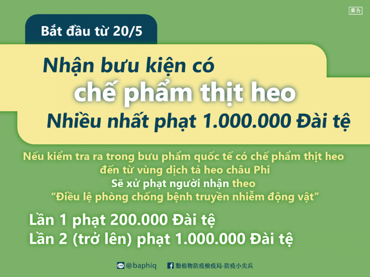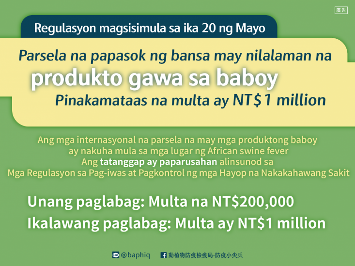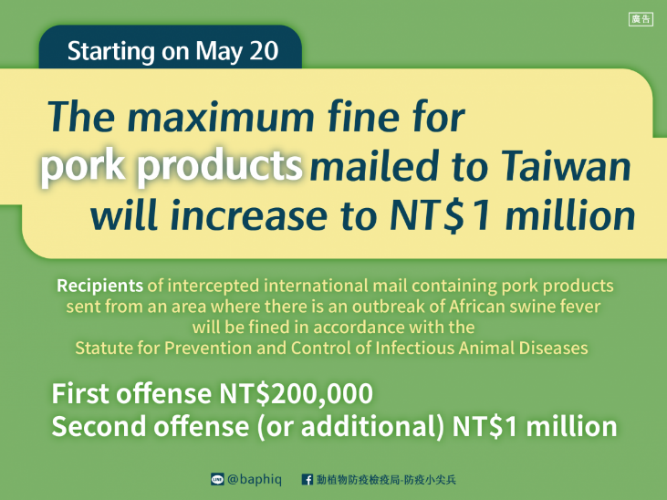 【轉知】內政部移民署 臺北市服務站-提醒您勿入非法肉品,共同防治非洲豬瘟