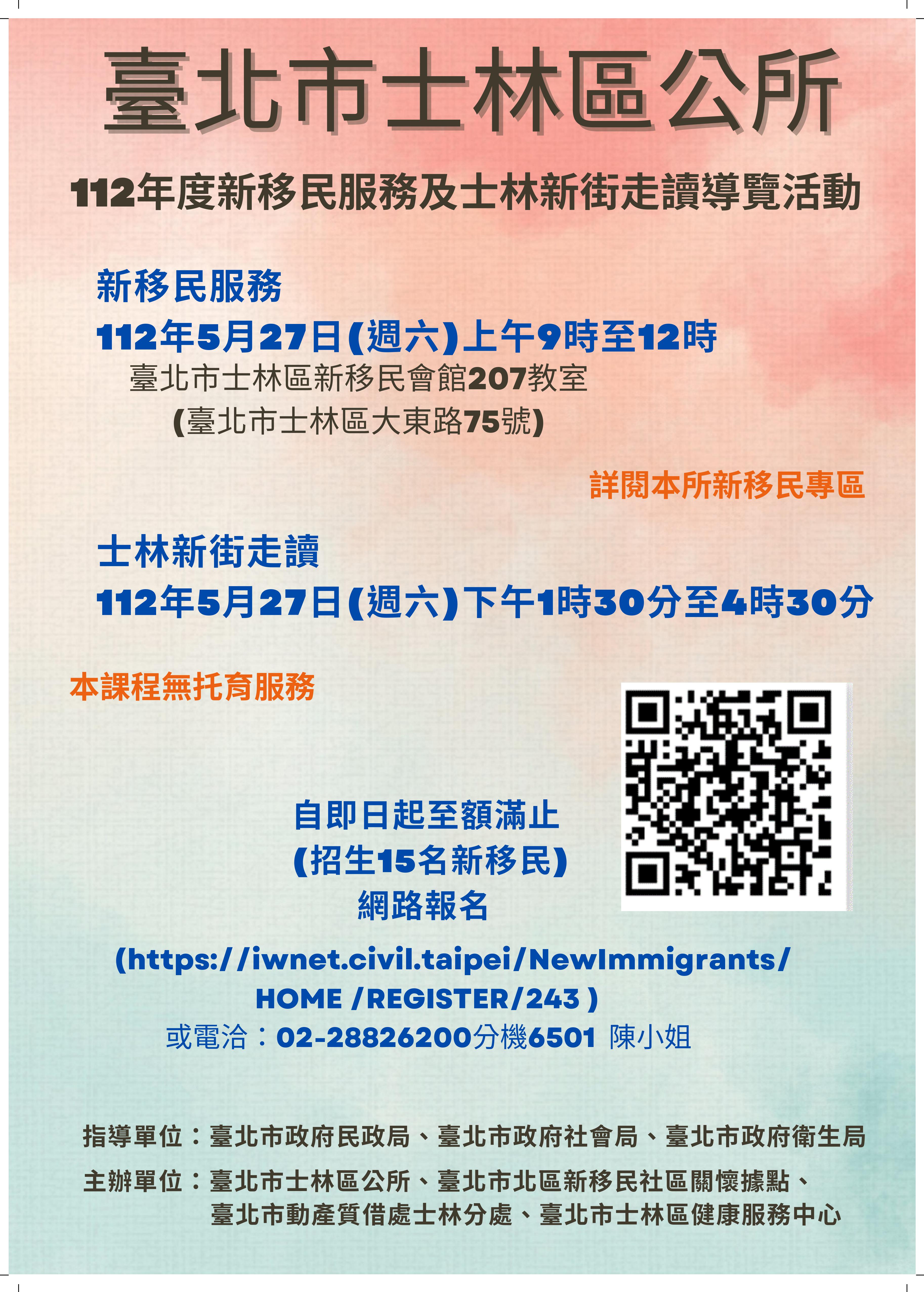 【轉知】士林區公所-新移民服務及士林新街走讀導覽活動
