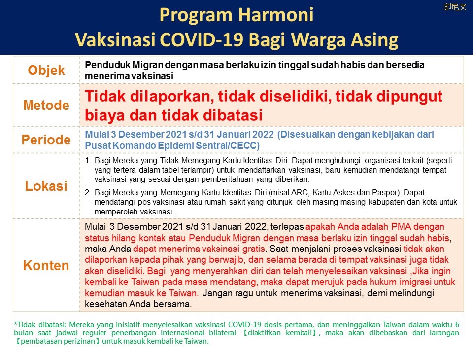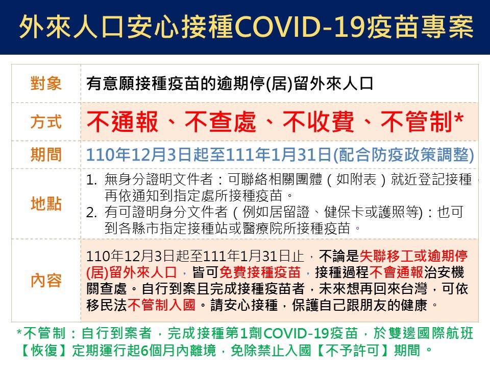 【轉知】移民署推動「外來人口安心接種COVID1-19疫苗專案」製作多國語言圖卡