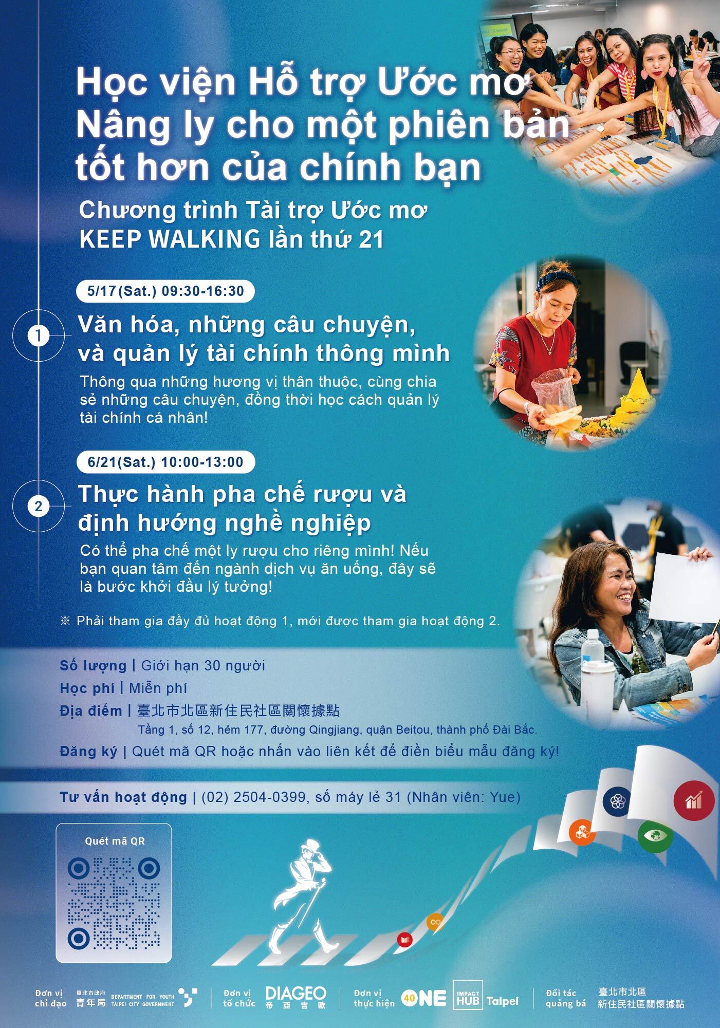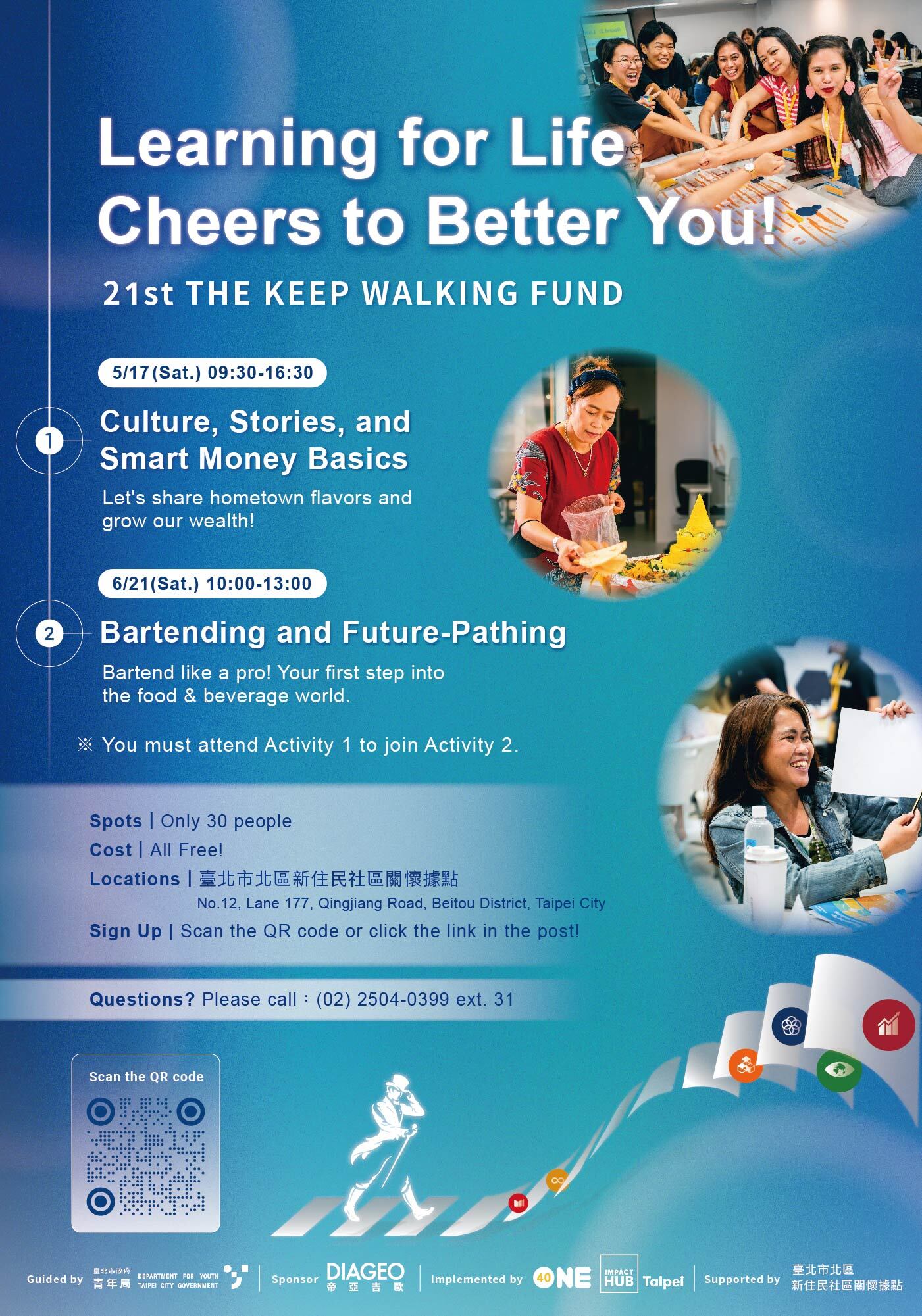 身為在台灣跨文化家庭的一份子,也能找到共鳴與成長的機會 —— 來一起分享熟悉的家鄉味、學會理財生活技巧,還能體驗調酒的新樂趣!兩日精彩課程完全免費,開啟在台灣發展的更多可能!