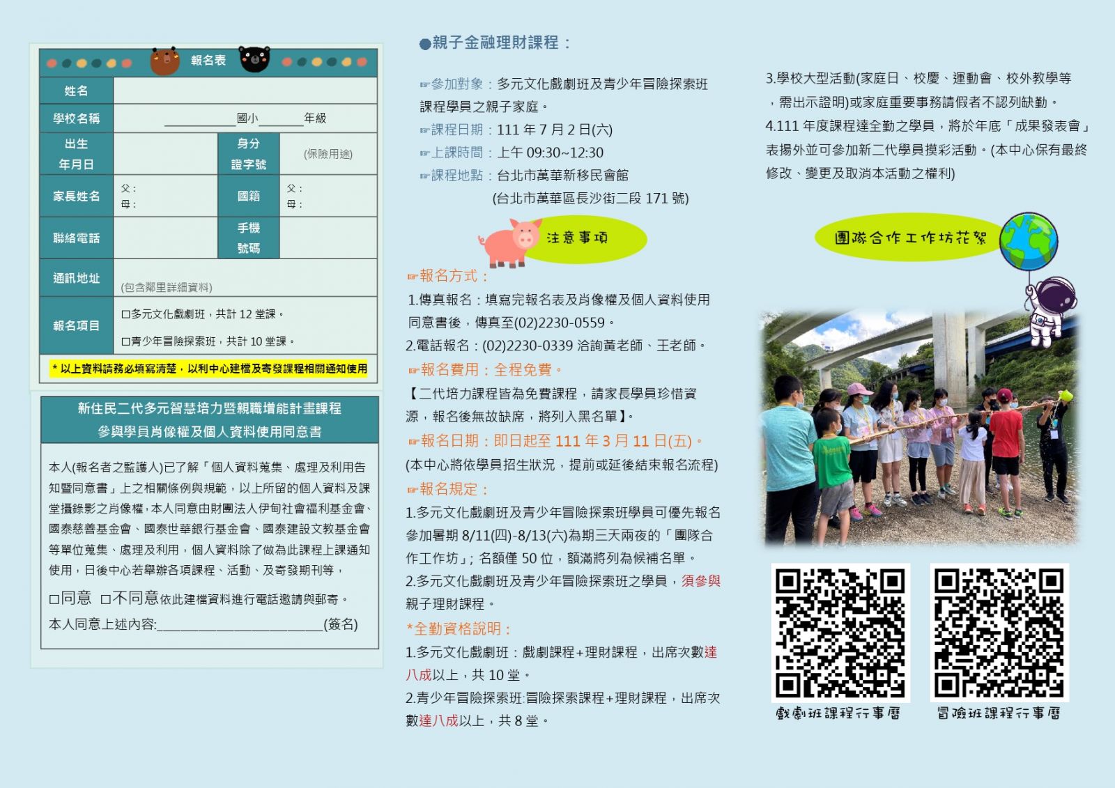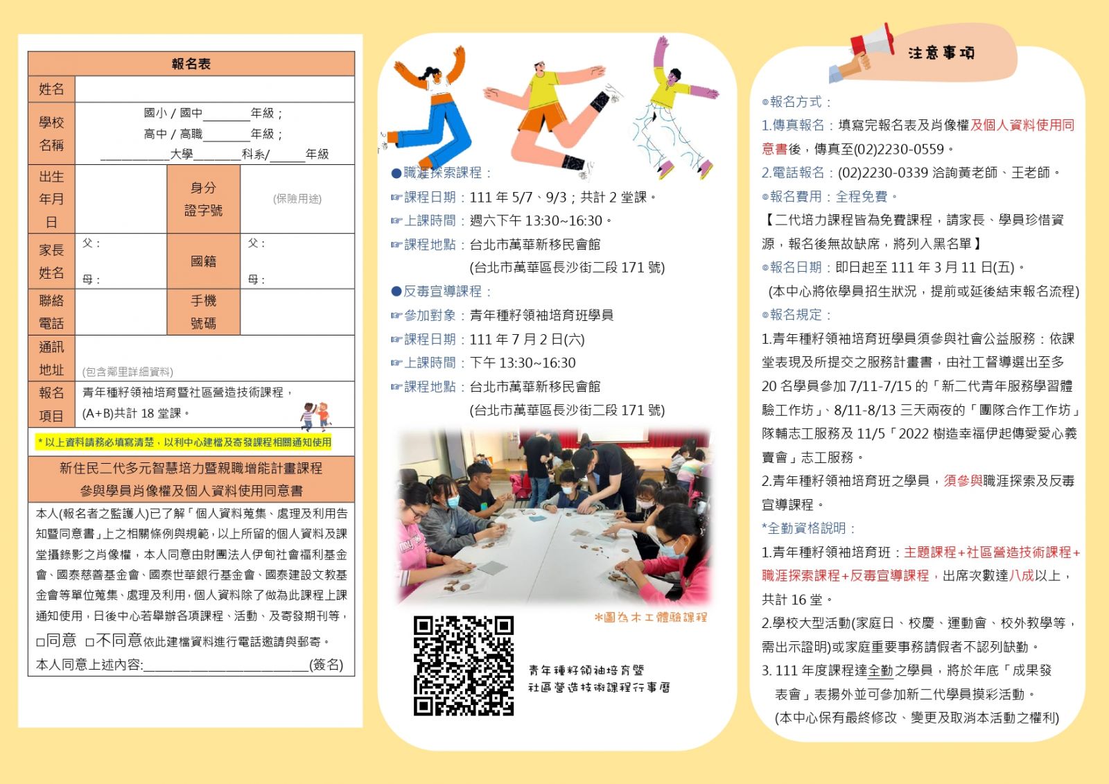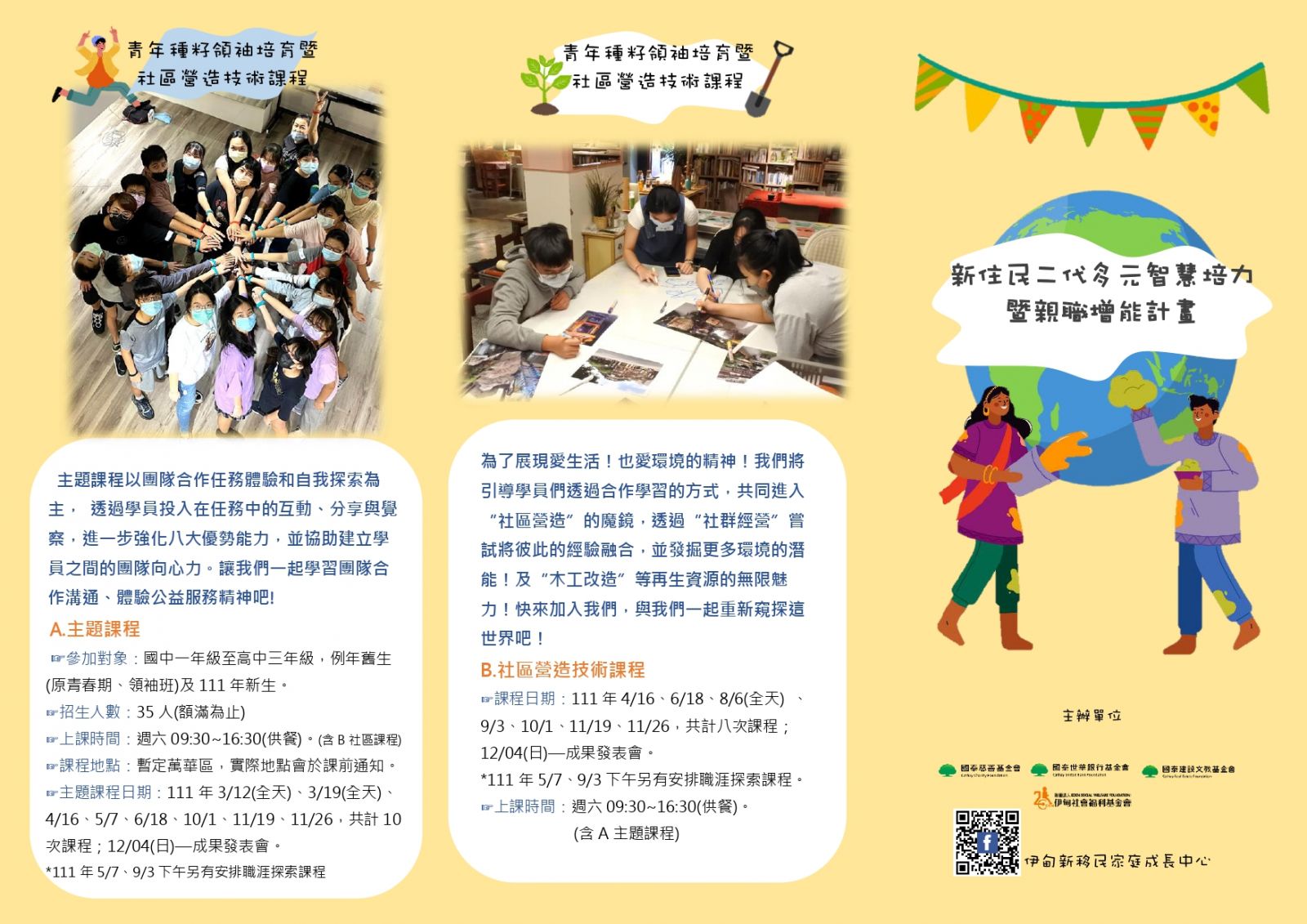 【轉知】財團法人伊甸社會福利基金會函「新住民二代多元智慧培力暨親職增能計畫」課程