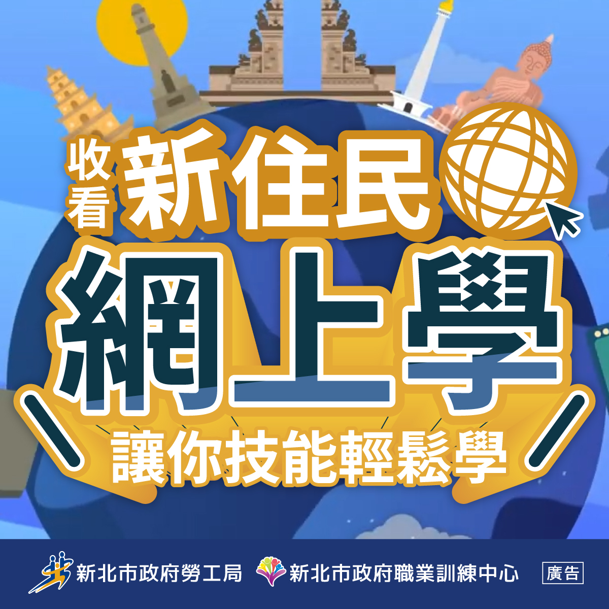 新北市政府勞工局職業訓練中心為推廣職業訓練,營造網路學習平台,積極推出「新住民網上學」平台內容及服務,近年由華視承辦製作,主題多元豐富,也提供了英文、泰文、越南文、印尼文等語言版本,滿足新住民朋友的需求,歡迎 貴機構多加利用,分享給所屬會員及民眾。