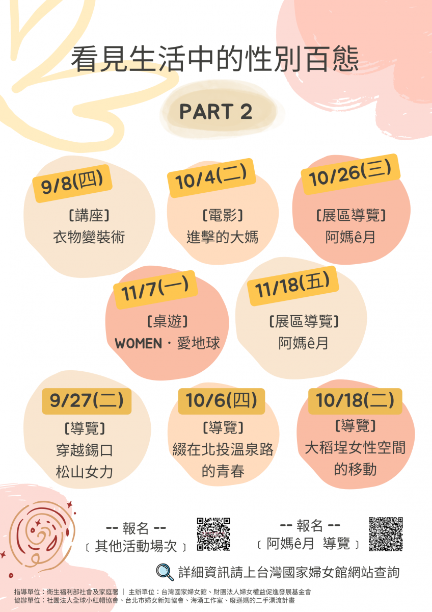【轉知】台灣國家婦女館辦理111年性別平等教育宣導系列活動「看見生活中的性別百態-PARTⅡ」活動簡章資料,詳如附檔,敬請有興趣者踴躍報名參加