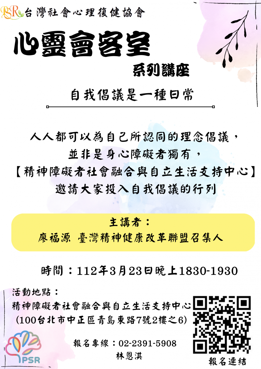 【轉知】臺灣心理復健協會-【心靈會客室】 社區講座