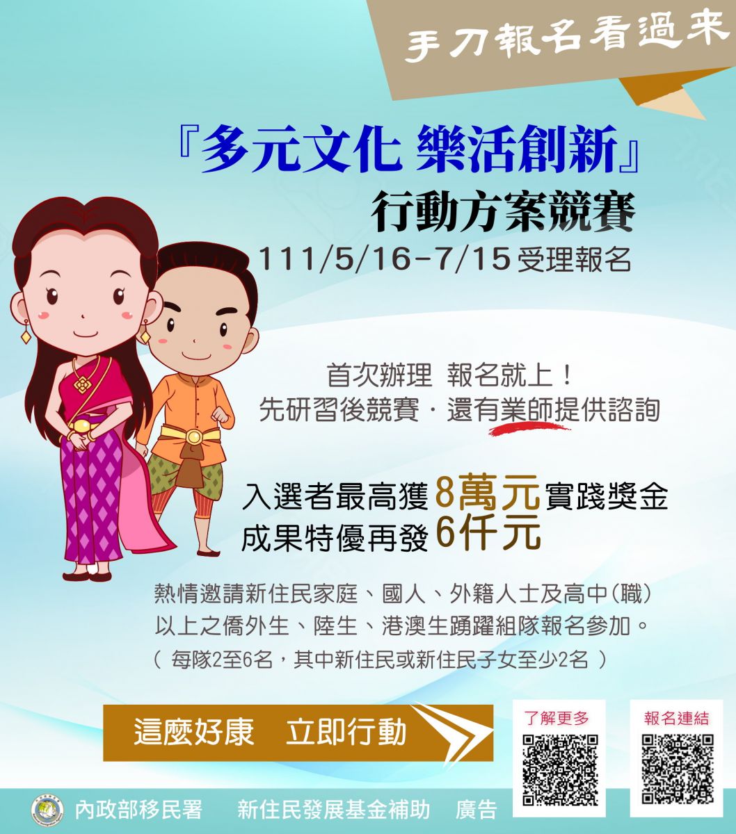 【轉知】內政部移民署-「多元文化樂活創新」行動方案競賽