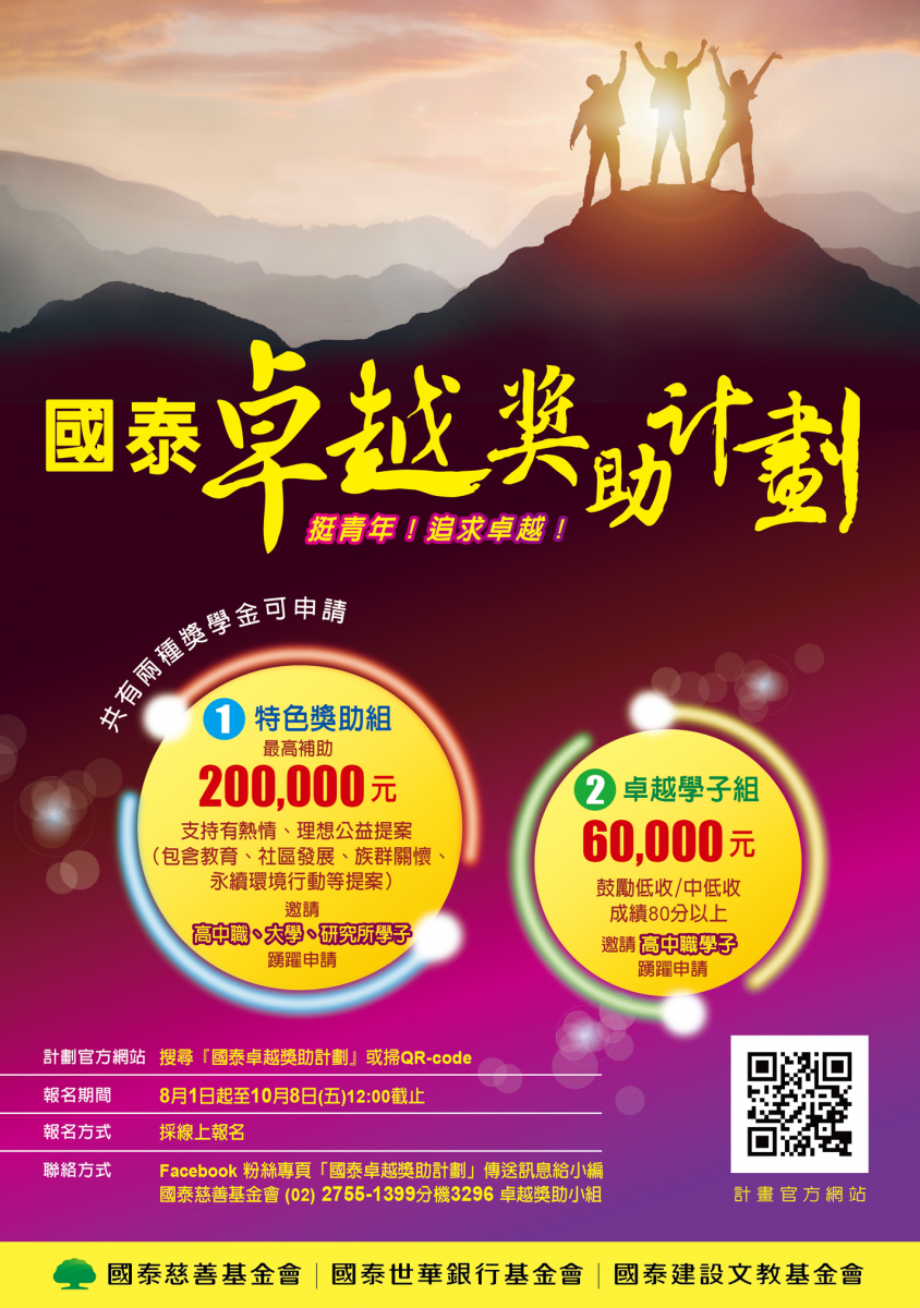 【轉知】國泰卓越獎助計畫挺青年追求卓越