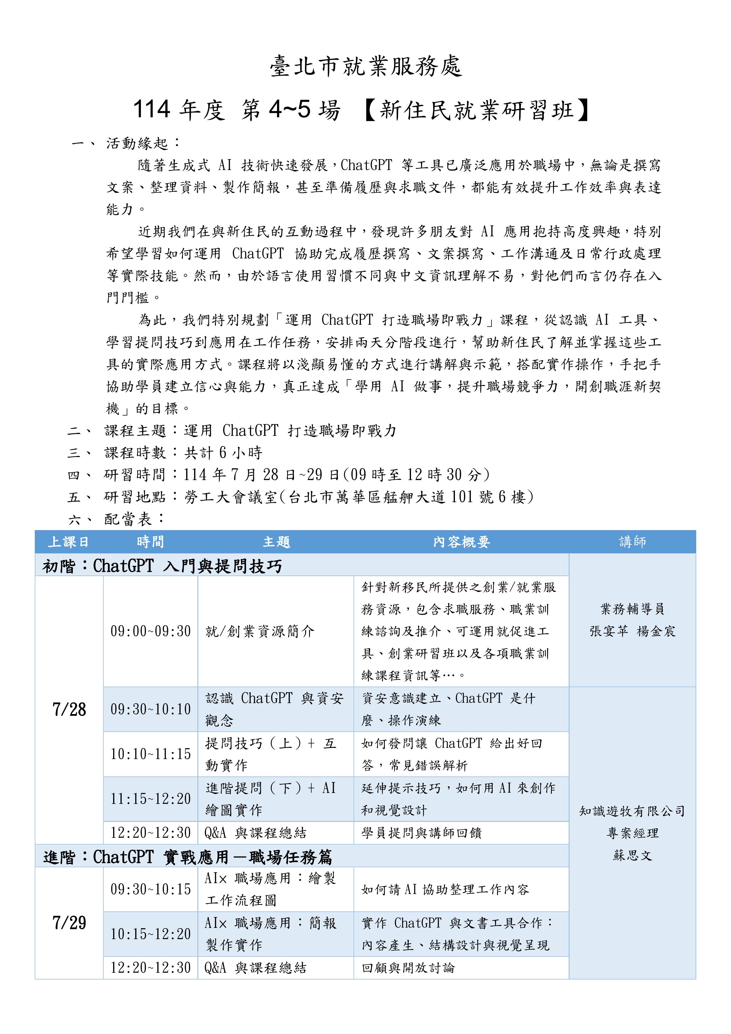【轉知】臺北市就業服務處-運用 ChatGPT 打造職場即戰力