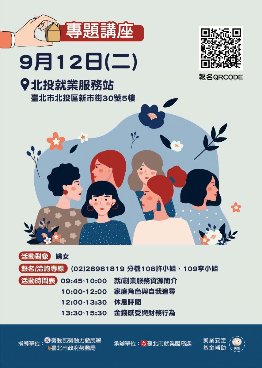 北投就服站擬於9/12(二)辦理整天的婦女講座,