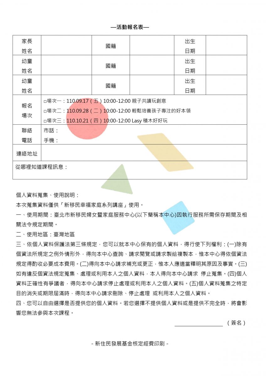 CopyRight 2026 臺北市新住民家庭服務中心 All Rights Reserved. Designed By