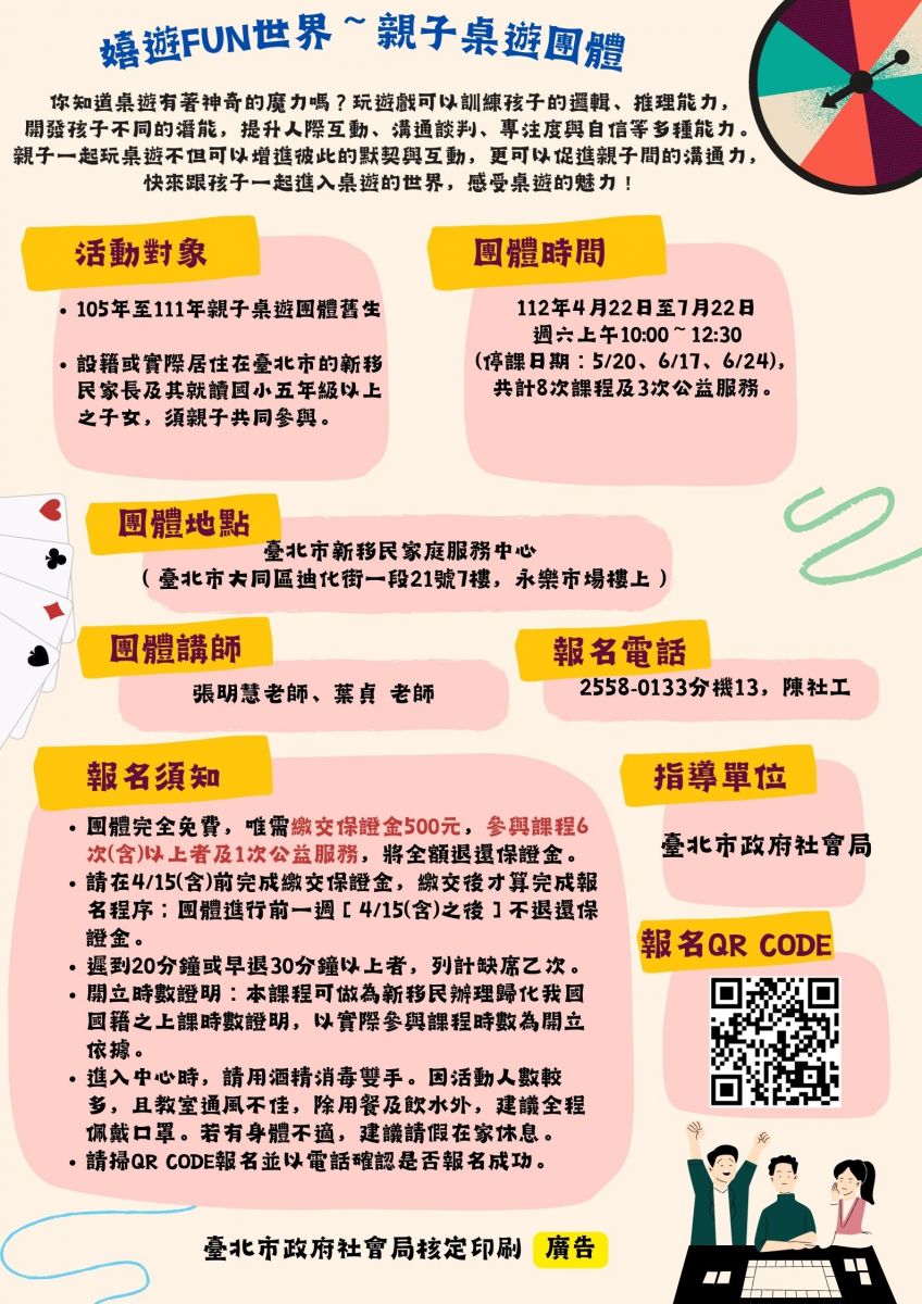 *若有意願報名參加,請掃QR CODE進入報名連結,並以電話確認是否報名成功,電話為:02-2558-0133#13陳社工、#14 劉社工。