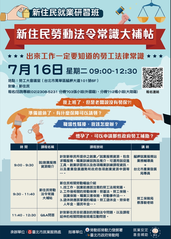 【轉知】就業服務處新住民勞動法令大補帖~出來工作一定要知道的勞工法律常識