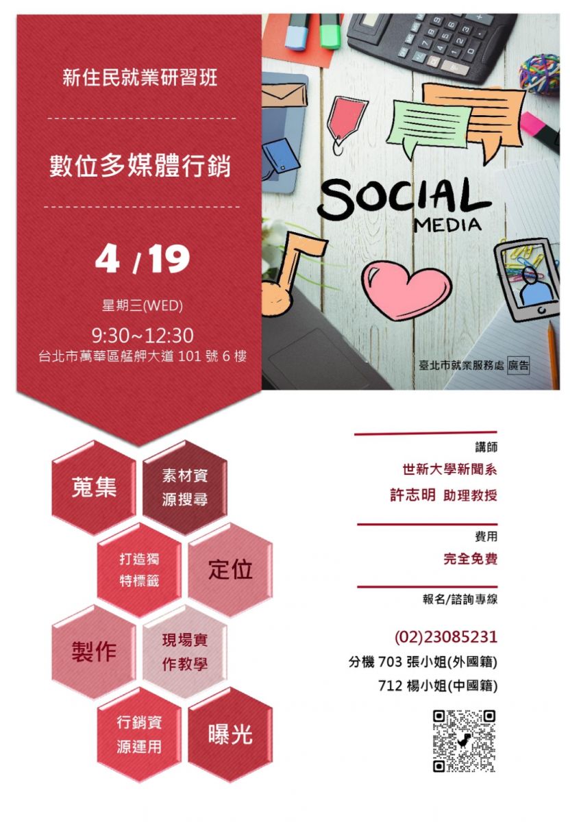 【轉知】臺北市就業服務處-新住民就業研習班