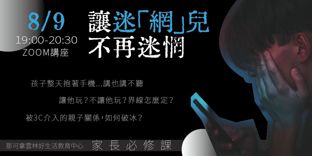 ZOOM線上講座主題:8/9 讓迷「網」兒不再迷網-家長必修課