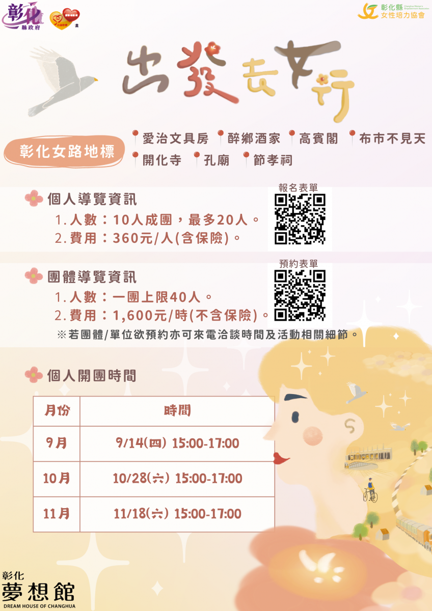 一、彰化夢想館於112年9至11月辦理112年「「出發去女行」彰化女路導覽活動。