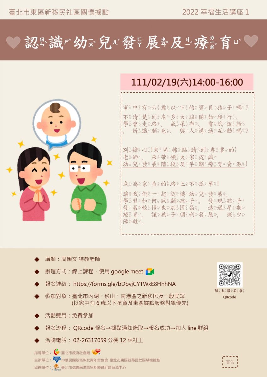 【轉知】東區據點-認識幼兒發展及療育講座