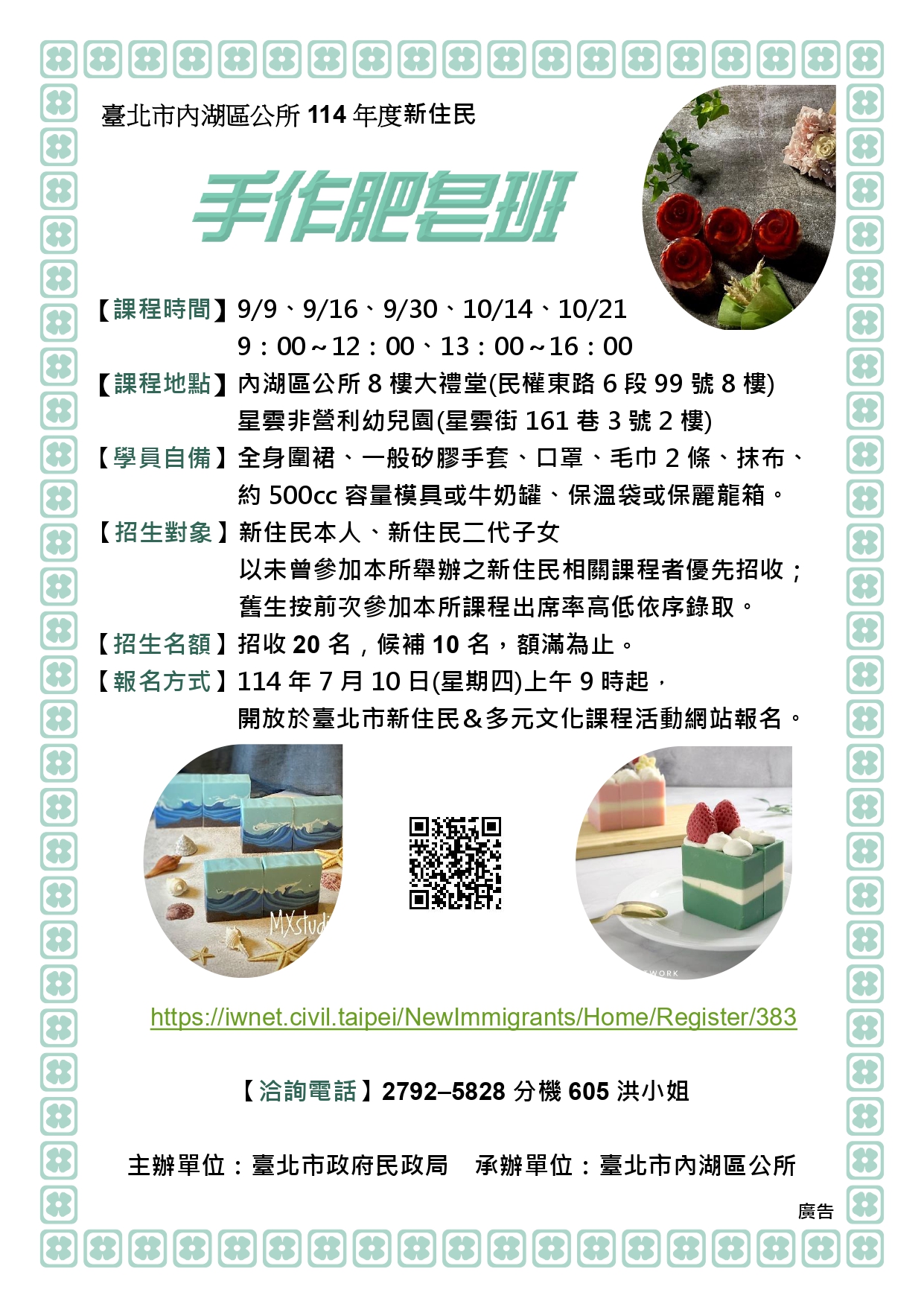 【轉知】臺北市內湖區公所-新住民手作肥皂班