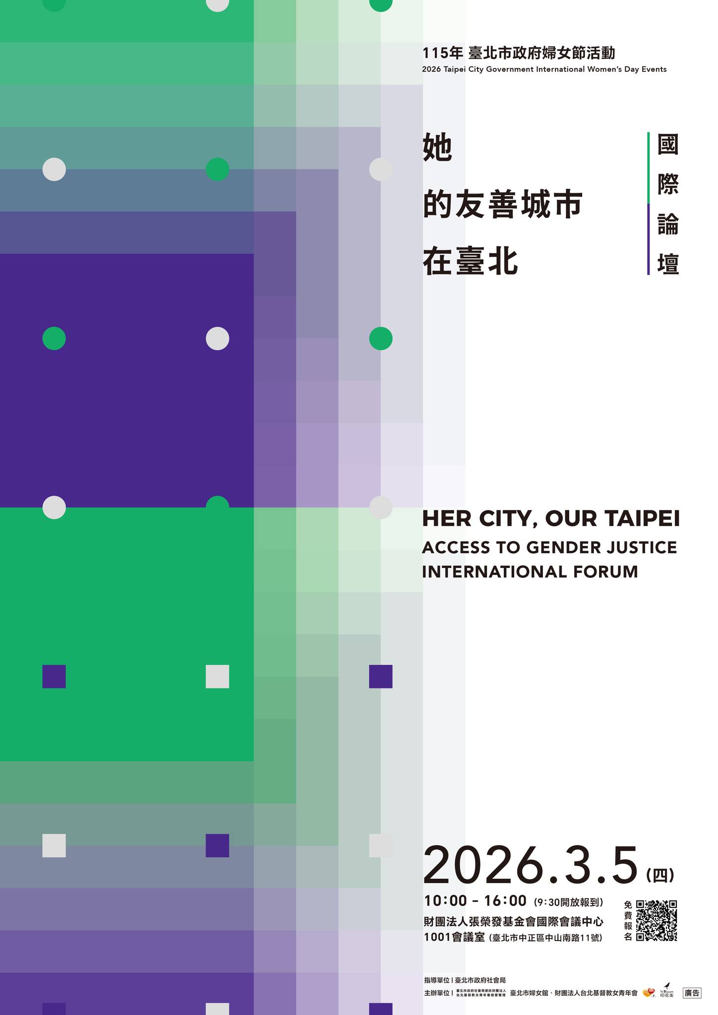 【轉知】臺北市政府社會局-婦女節活動她的友善城市在臺北 國際論壇 ▌𝐇𝐞𝐫 𝐂𝐢𝐭𝐲, 𝐎𝐮𝐫 𝐓𝐚𝐢𝐩𝐞𝐢:𝐀𝐜𝐜𝐞𝐬𝐬 𝐭𝐨 𝐆𝐞𝐧𝐝𝐞𝐫 𝐉𝐮𝐬𝐭𝐢𝐜𝐞