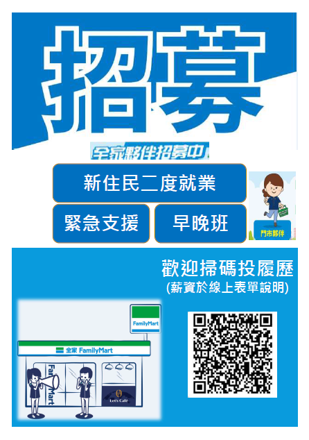 【轉知】全家便利商店-新住民就業招募