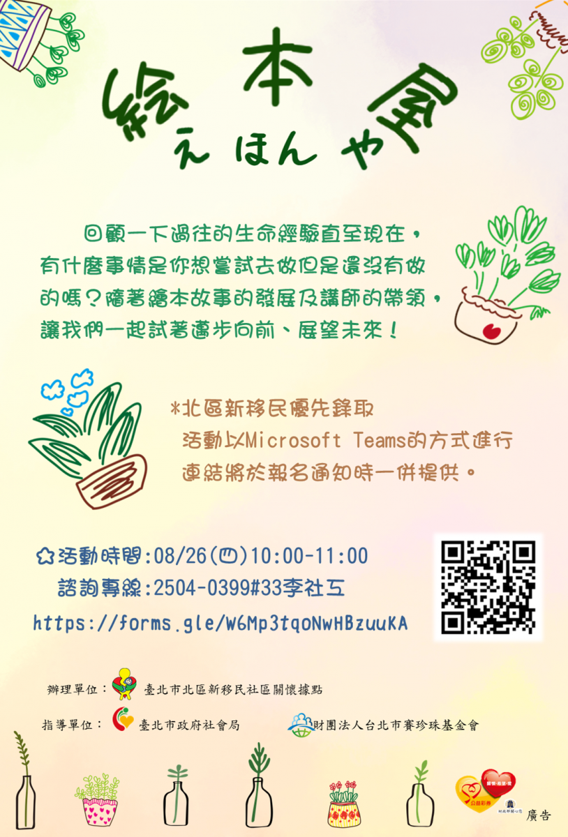 【轉知】臺北市北區新移民社區關懷據點-繪本屋活動宣導