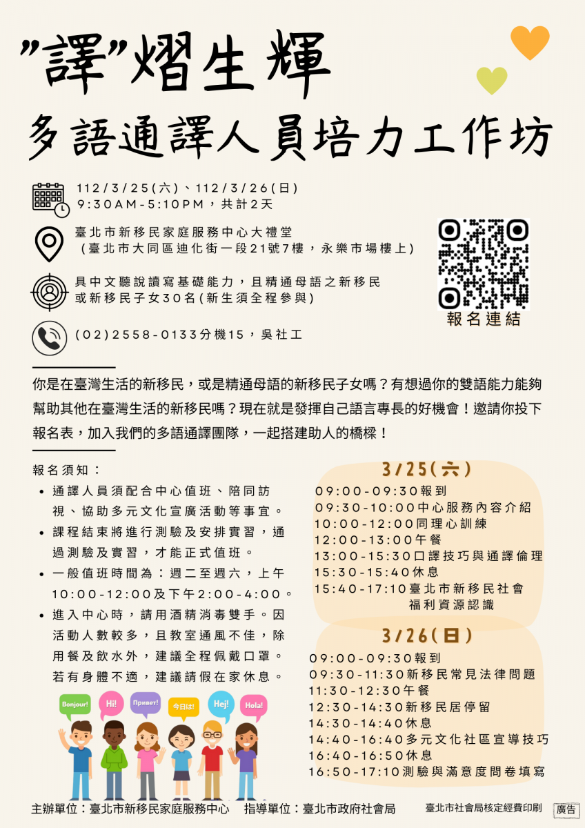 且對通譯工作有興趣的新移民及新移民子女報名!
