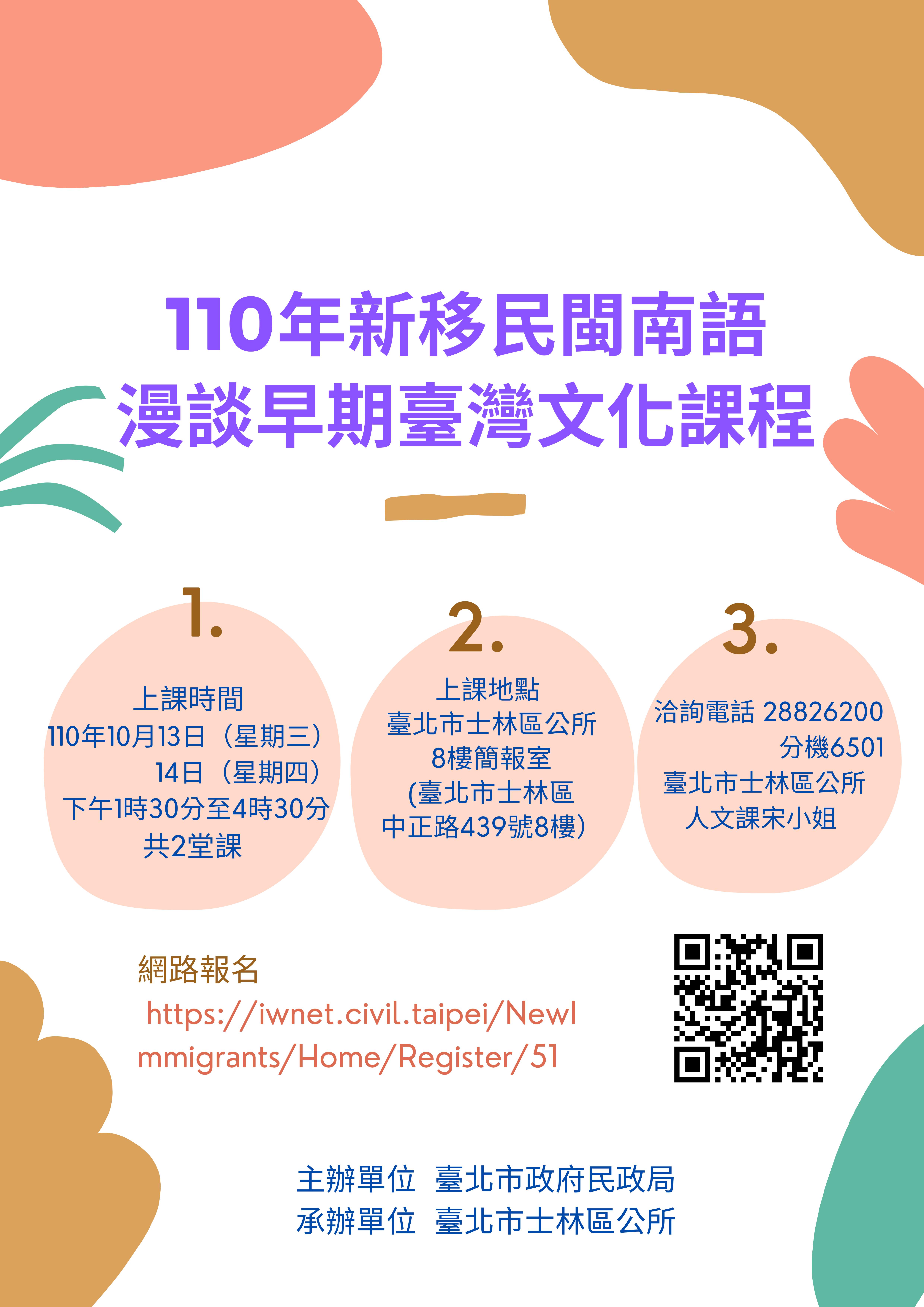 【轉知】士林公所閩南語漫談早期臺灣文化課程