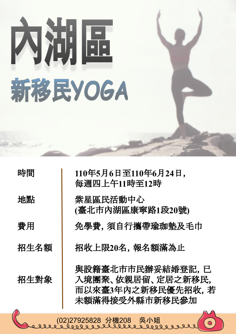 臺北市內湖區公所110年度新移民輕瑜珈招生