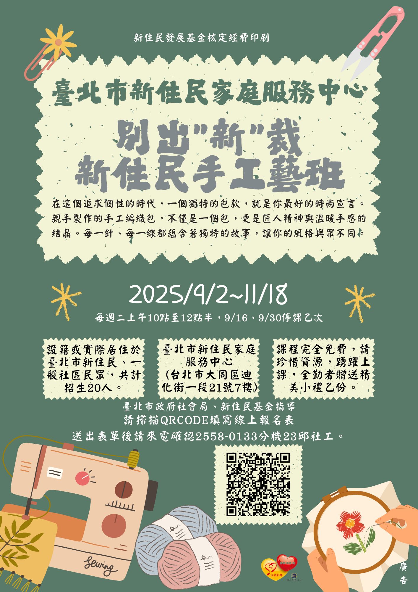 【中心活動宣廣】 別出「新」裁-新住民手工藝班 開課囉!