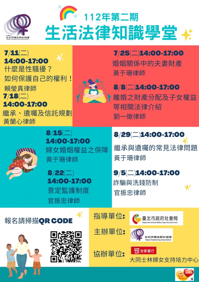 台北市婦女新知協會協會將於7月開始辦理一系列活法律課程,
