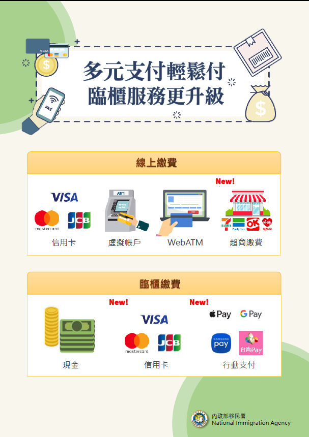 【轉知】移民署推動多元支付服務,歡迎多加利用
