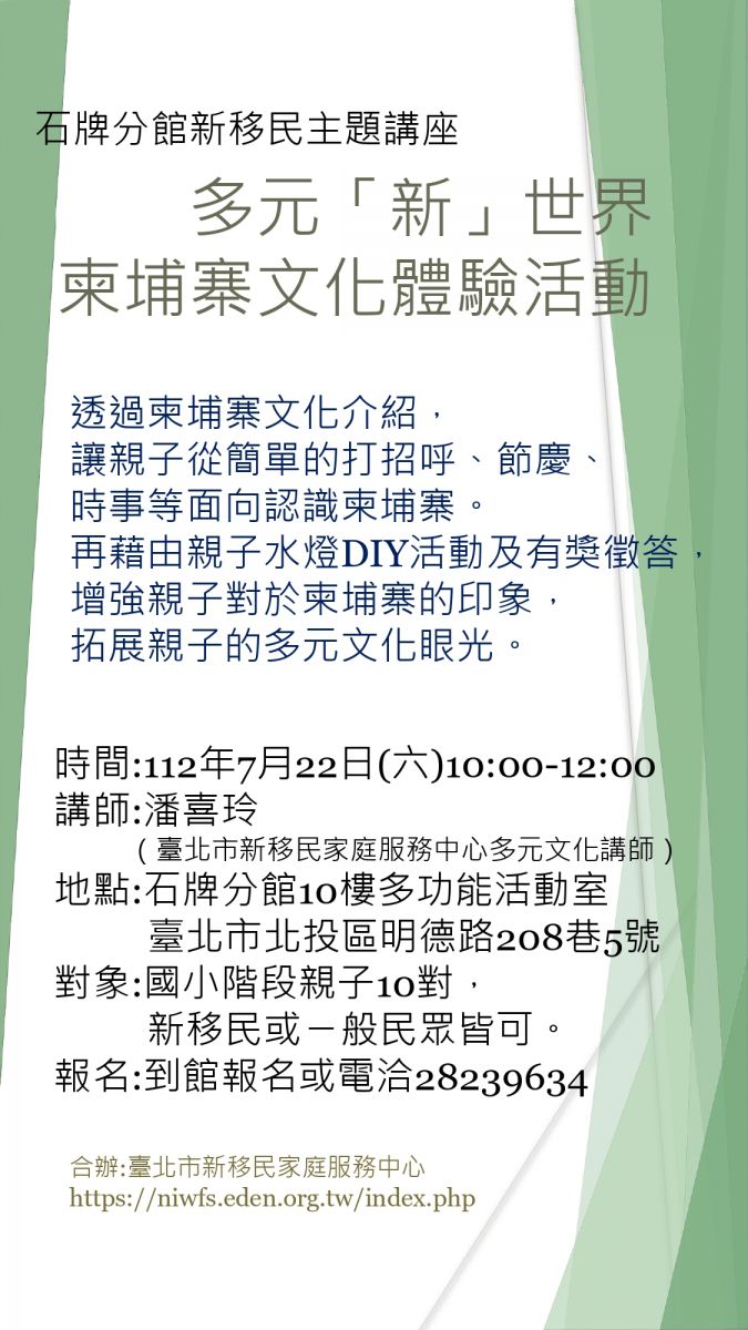 新移民中心本次與石牌圖書館合辦多元文化體驗活動,