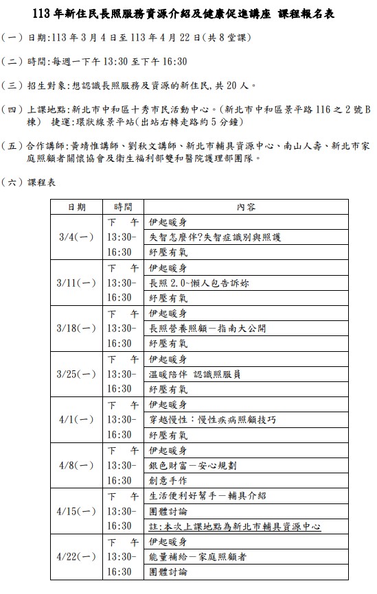 實用好懂的長照課程+紓壓有氧+療癒手作,歡迎您報名~