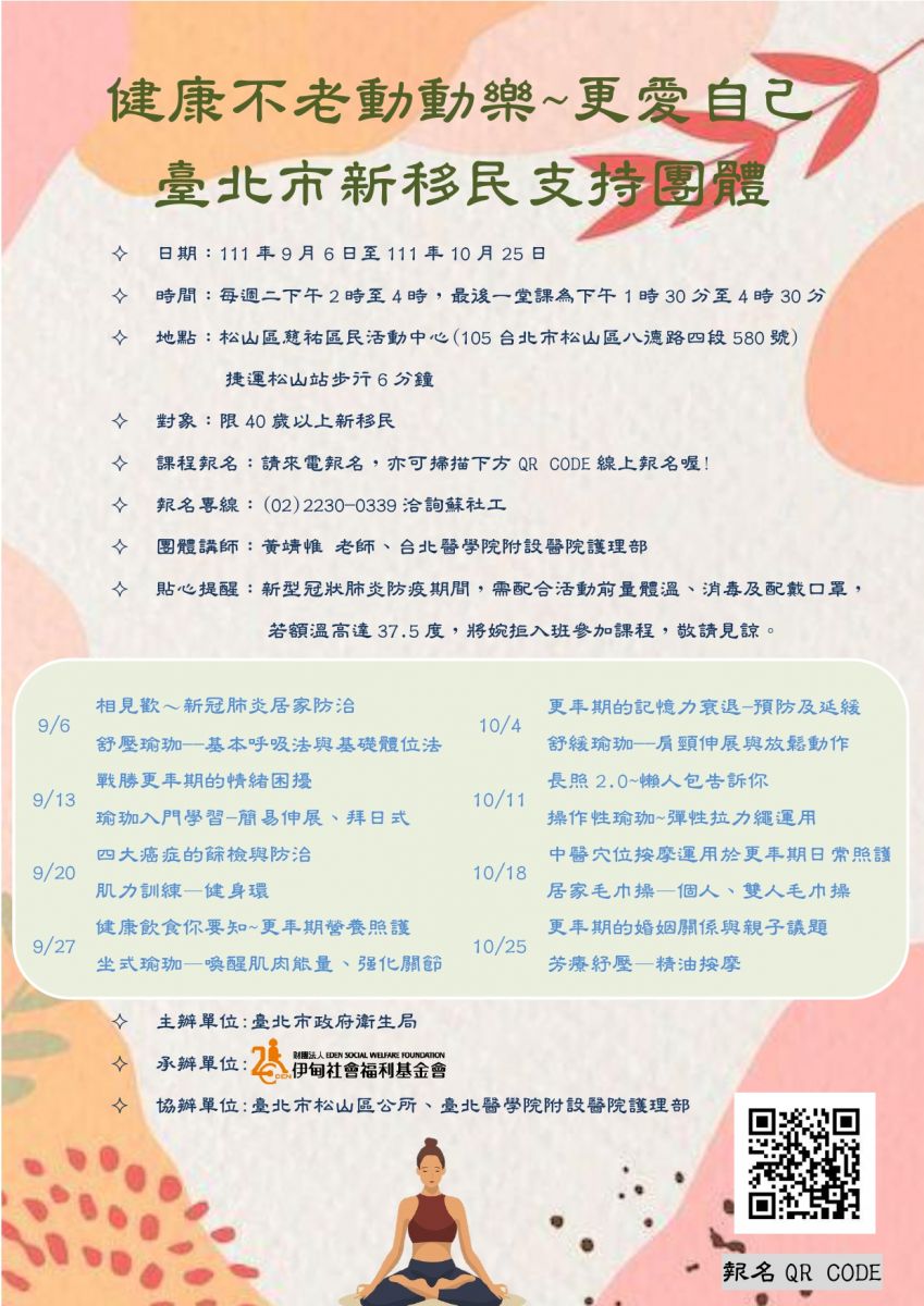 【轉知】伊甸基金會新移民家庭成長中心-健康不老動動樂~更愛自己