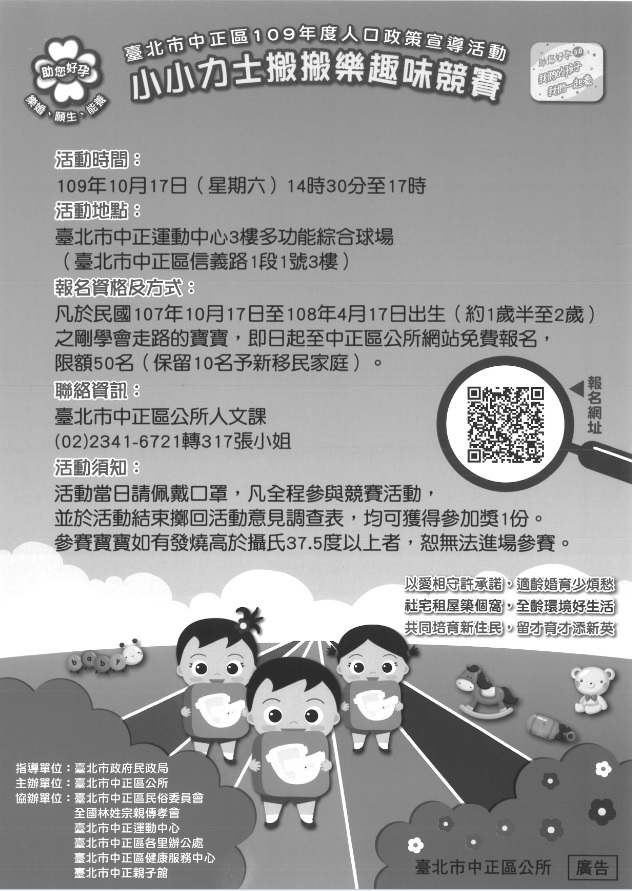 【活動轉知】 台北市中正區公所辦理小小力士搬搬樂趣味競賽