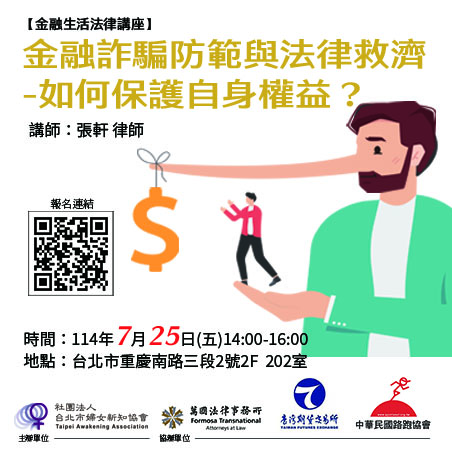 【轉知】社團法人台北市婦女新知協會-【金融生活法律講座】