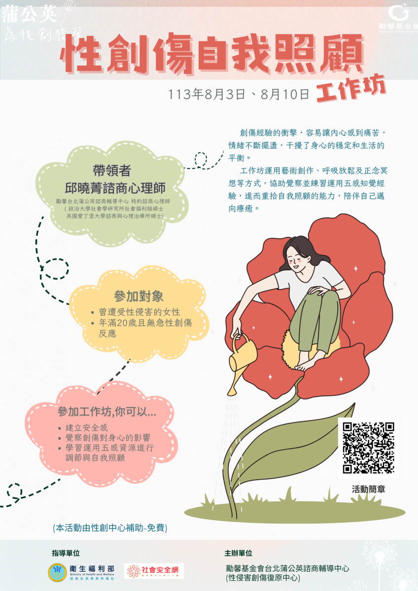 【轉知】勵馨台北市蒲公英諮商輔導中心-性創傷自我照顧工作坊
