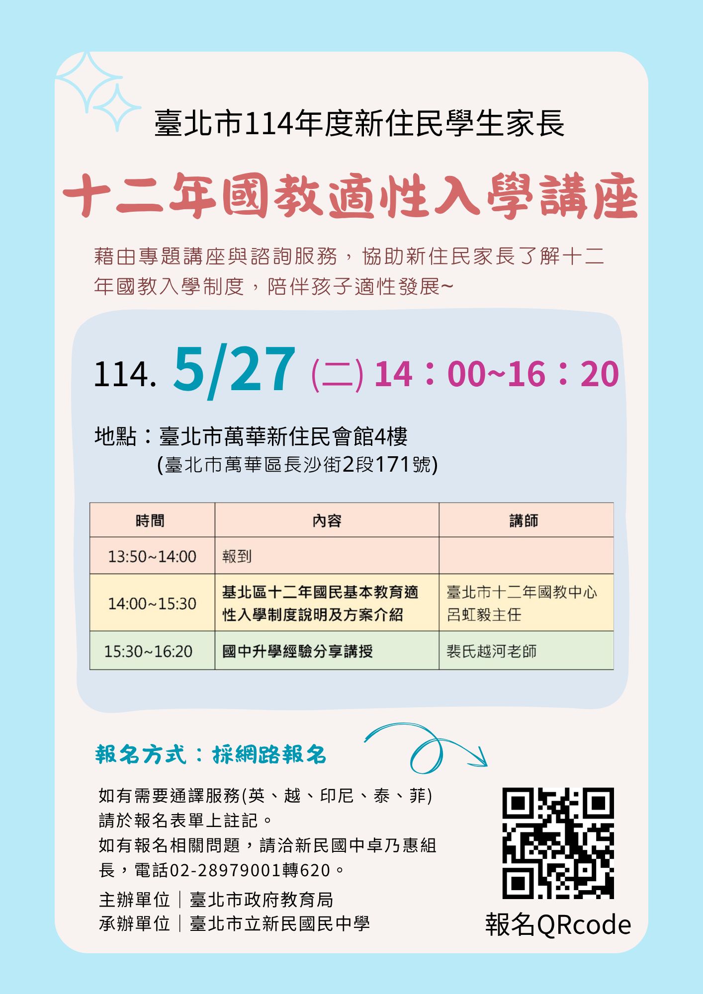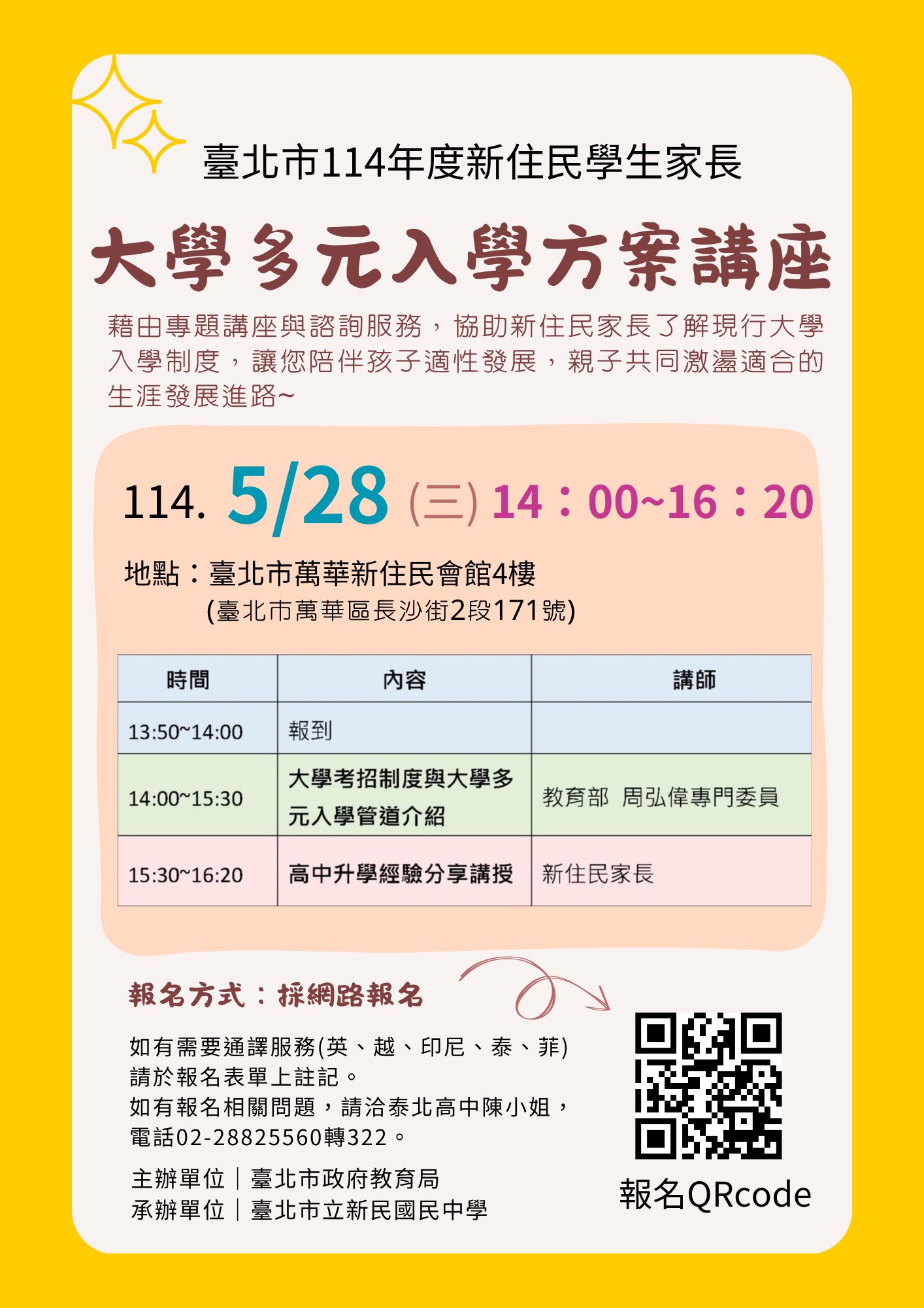 *如有需要通譯服務(英語、越南語、印尼語、泰國語、菲律賓)請於報名表單上註記喔 !