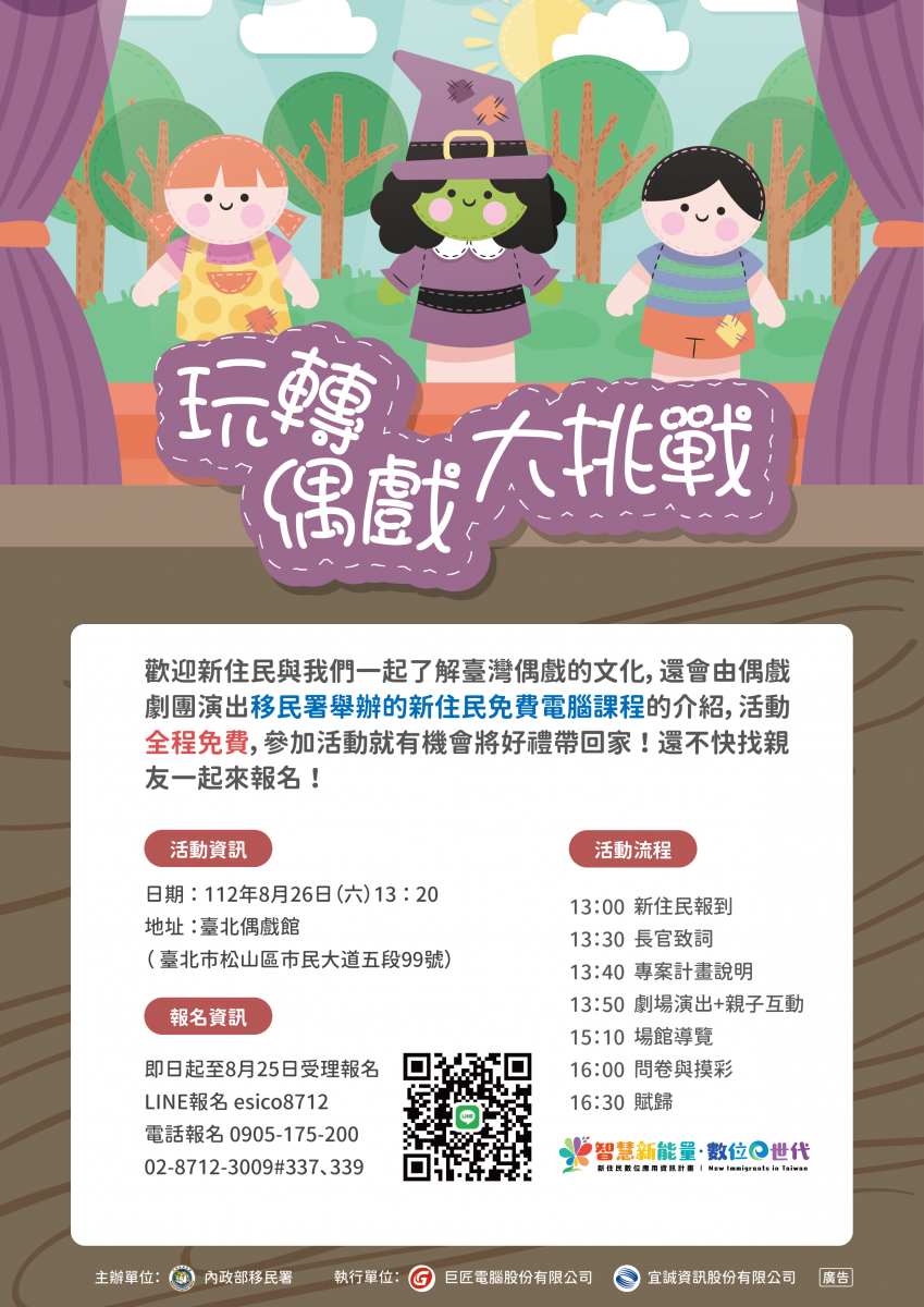活動地點: 臺北偶戲館(臺北市松山區市民大道五段99號)